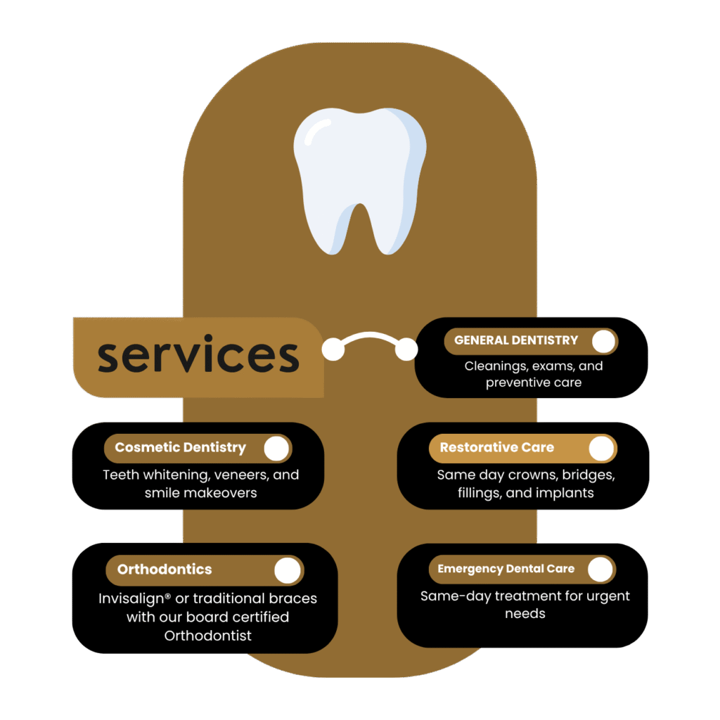 We provide comprehensive dental care for the whole family — from routine cleanings to cosmetic smile makeovers and same-day restorative treatments. Whether it’s braces, implants, or emergency care, our team ensures expert, comfortable, and reliable service every step of the way.